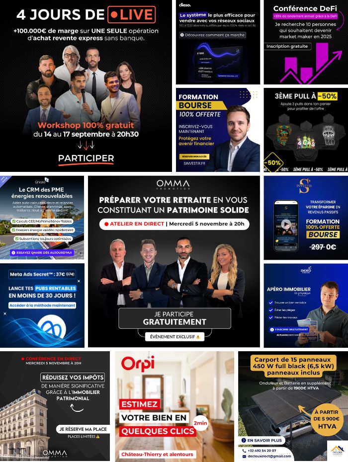 Chaque créa repose sur ce que je vois au quotidien dans les campagnes (Meta, TikTok, Google), avec un focus : captez l’attention, alignez le message, poussez à l’action.