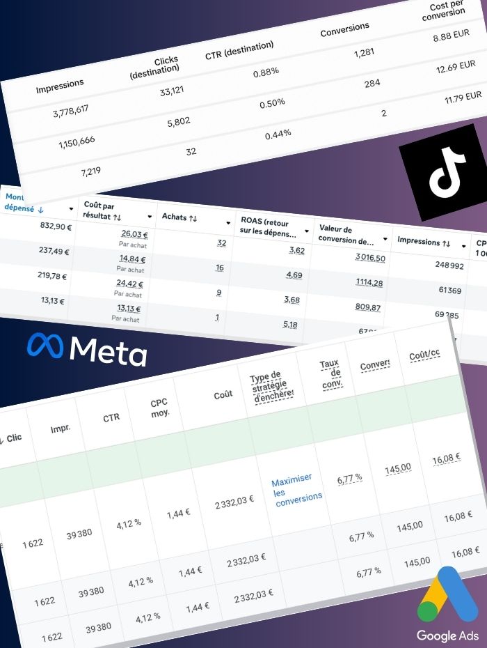 visuels testés en campagne réelle sur Meta, Google et TikTok